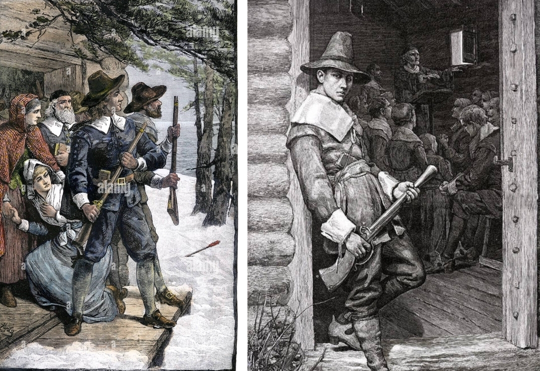 “Em todos os municípios de Massachussets, no ano de 1640, havia o costume dos crentes puritanos irem ao culto levando armas de fogo, pólvora, munição e espadas. Um homem armado para cada família era considerado o suficiente.”